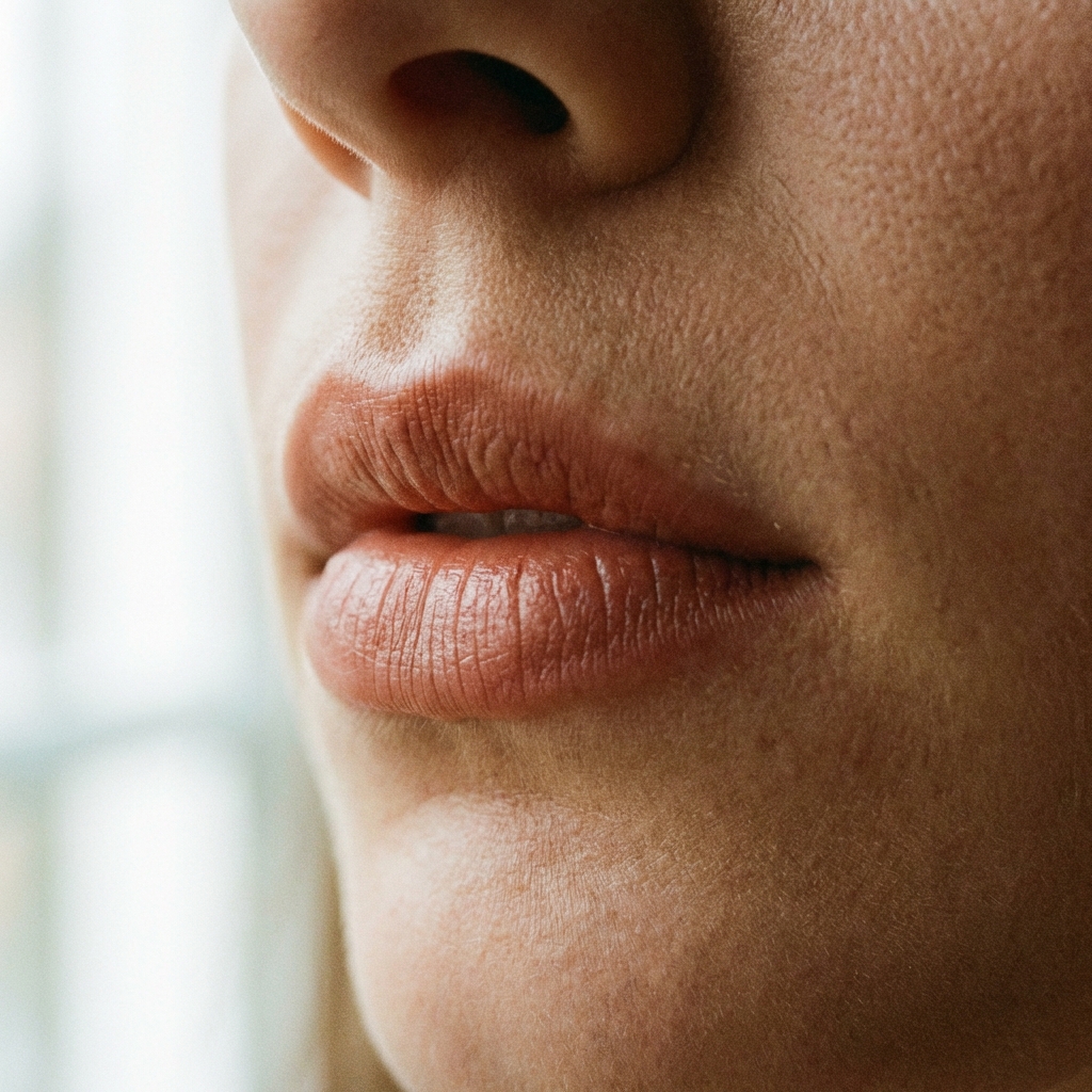 - Lekko pełniejsze, bardziej nawilżone wargi