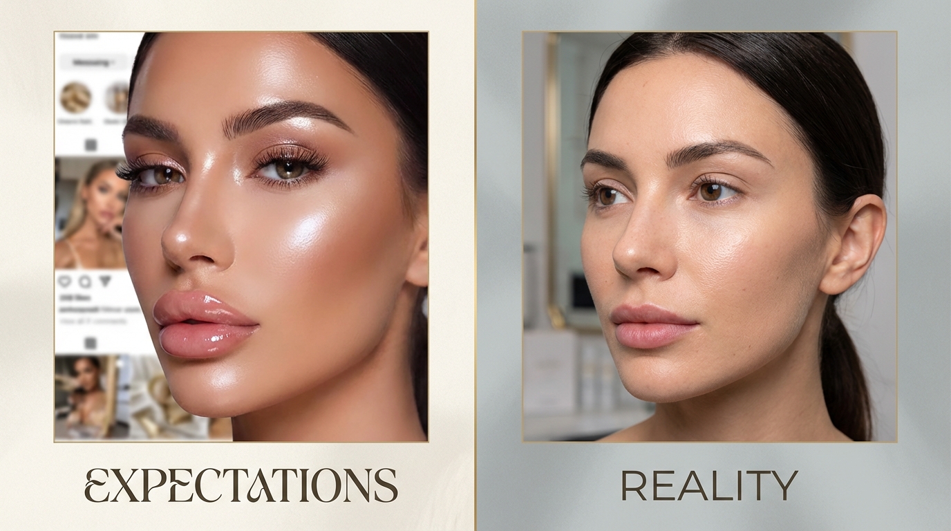 Efekt po zabiegu nie jest ostateczny. Przez pierwsze 2–7 dni obrzęk zawyża wynik. Prawdziwy efekt widać po tygodniu. Cierpliwość jest kluczowa — nie panikuj po wyjściu z gabinetu.